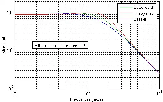 - Filtro de Chebyshev, con un corte agudo pero con una banda de paso con ondulaciones
