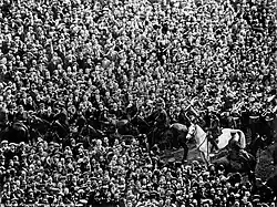 Como medida final, la policía montada fue movilizada para intentar sacar a la gente del campo de juego, incluyendo al P. C. George Scorey, quien se encontraba montado en un caballo blanco de nombre Billie (algunas fuentes lo deletrean como Billy). Scorey respondió una llamada de emergencia mientras que la muchedumbre seguía creciendo.[28] El caballo Billie era de color gris, pero aparecía ser de color blanco en un primitivo noticiario en blanco y negro de la época. Contrario a lo que mucha gente piensa, otros caballos también acudieron, pero el caballo "blanco" se convirtió en la imagen simbólica del día.[34][28] Algunos oficiales afirmaron que sin la acción de Scorey y su caballo el partido nunca habría comenzado.[34]