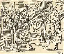![]() Finn Arnesson y Thorir Hund según ilustración de Gerhard Munthe. | ||