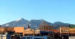 Flagstaff se encuentra cerca del borde suroccidental de la meseta del Colorado, a lo largo del borde occidental del mayor bosque contiguo de pino ponderosa de los Estados Unidos continentales.[4] Flagstaff se localiza adyacente al monte Elden, justo al sur de los picos San Francisco, la cresta montañosa más alta del estado de Arizona. Su punto culminante, el pico Humphreys, el vértice más alto de Arizona, con 3.852 m s. n. m., está a solo 16 km al norte de Flagstaff, en el parque de Kachina Peaks Wilderness.