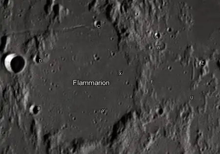Por convención estos elementos son identificados en los mapas lunares poniendo la letra en el lado del punto medio del cráter que está más cerca de Flammarion.