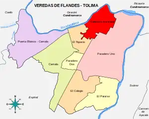 Además de su Cabecera municipal, Flandes tiene bajo su jurisdicción cuatro centros poblados: