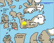 La estación está situada en la isla de Devon, que tiene un ambiente bastante similar al existente en Marte y un desierto polar, aproximadamente 165 kilómetros al noreste de la aldea de Resolute en Nunavut, Canadá. Situada en Haynes Ridge, con vistas al cráter de impacto Haughton, un cráter de 23 km (14 millas) de diámetro formado hace aproximadamente 39 millones de años (Eoceno tardío).[1] Su localización es de aproximadamente 1.609 kilómetros del Polo Norte geográfico y aproximadamente 1.287 kilómetros del Polo Norte magnético.