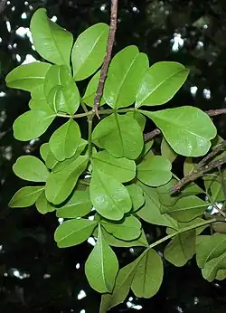 Es un árbol alto, que alcanza un tamaño de hasta 40 metros de altura,[1] y un diámetro de tronco de 60 cm. La corteza es verde moteada, gris y marrón. Corteza con parches que dejan una serie de depresiones redondeadas. Aparecen pequeñas protuberancias en la corteza. El tronco es cilíndrico y no reforzado. Las hojas son compuestas con 3-7 foliolos. Estos de 2-8 cm de largo, con punta roma o con muescas. Suave y verde en ambas caras, algo verde más pálido por debajo. Pequeños puntos de aceite visibles con una lupa. Las flores son blancas en forma de panículas y se producen de septiembre a octubre. Las flores individuales con alrededor de 6 mm de diámetro. El fruto es una cápsula leñosa marrón, de 4 a 5 cm de largo. Las semillas son de 25 mm de longitud, que incluye las finas "alas", que rodean la parte más pesada central de la semilla. Las semillas son dispersadas por el viento.