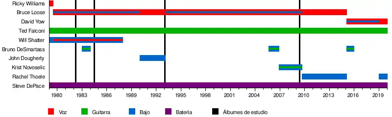 - Bruce Loose - voz (1979-2015), bajo (1979-1983, 1983-1990, 1993-2006)