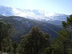 - Mesomediterráneo o mediterráneo medio o típico (800-900 a 122-1300 m s. n. m.), caracterizado por el bosque mediterráneo de encinas (aunque aparecen en otros), almeces y retamas.