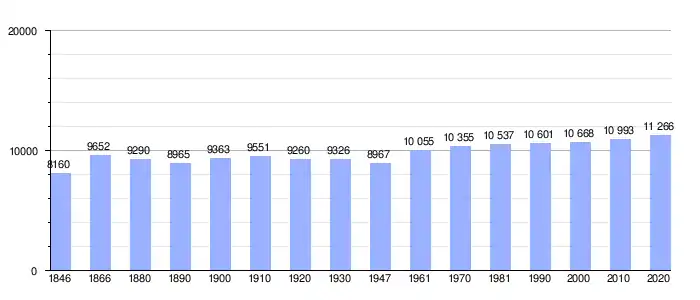 | Gráfica de evolución demográfica de Florennes entre 1846 y 2020 |