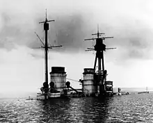 La flota permaneció en cautividad durante las negociaciones que desembocaron en el Tratado de Versalles. Von Reuter creyó que los británicos pretendían apoderarse de sus barcos el 21 de junio de 1919, fecha límite para que Alemania firmara el tratado de paz. Ignorando que este plazo se había extendido hasta el 23, Reuter ordenó que los buques fueran echados a pique a la primera oportunidad, que se presentó el 21 de junio. Esa mañana la flota británica dejó Scapa Flow para realizar maniobras de entrenamiento, y a las 11:20 Reuter transmitió la orden a sus naves.[5] De toda la flota internada, solo un acorazado, el Baden, tres cruceros ligeros y dieciocho destructores fueron salvados del hundimiento por el personal británico del puerto. La Marina Real británica, inicialmente opuesta a las operaciones de salvamento, decidió permitir a empresas privadas el intento de reflotar los barcos para su desguace.[85] Una empresa fundada por Ernest Cox llevó a cabo la mayor parte de los rescates, incluidos los de los barcos hundidos a más profundidad.[86] Tras la retirada de Cox por los problemas financieros de principios de los años 30, Metal Industries, Inc. se hizo cargo del reflote de los barcos alemanes. Se recuperaron cinco buques capitales más, aunque tres de ellos —SMS König, SMS Kronprinz y SMS Markgraf— se encontraban a demasiada profundidad para ser alzados y permanecen todavía en el fondo de Scapa Flow junto con cuatro cruceros ligeros.[87]
