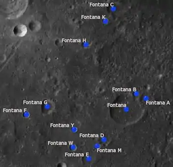![]() Localización de Fontana. Fotografía de la misión Lunar Reconnaissance Orbiter |