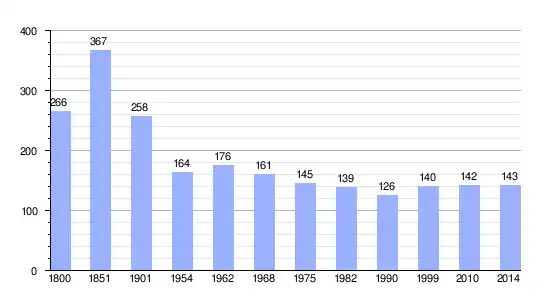 Los datos demográficos contemplados en este gráfico de la comuna de Fontenermont[4] se han cogido de 1800 a 1999 de la página francesa EHESS/Cassini, y los demás datos de la página del INSEE.[5]