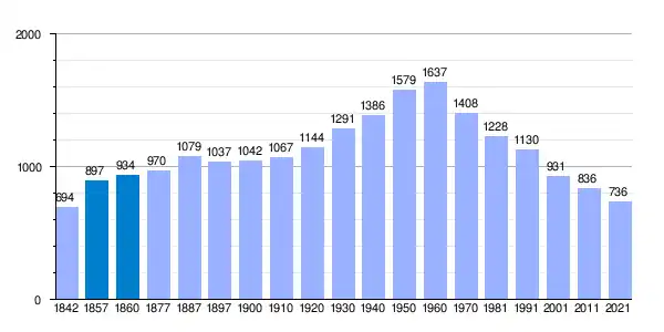 | Gráfica de evolución demográfica de Fontiveros[4] entre 1842 y 2021 |
