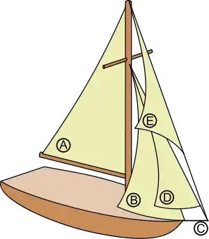 - Foque de abanico: el foque en forma de concha o abanico cuyos paños se concentran en un punto de la escota.[1]