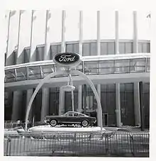 El pabellón de Ford en la Feria Mundial de Nueva York de 1964 era un edificio de 300 metros de longitud con una rotonda de vidrio de doce plantas en su centro llamada The Wonder Rotunda («la rotonda de las maravillas»). El edificio también contaba con sesenta y cinco pilones altos en un extremo y una gran sala de exposiciones en el otro. Dado que el énfasis estaba puesto en el automóvil, parte de la visita de la rotonda tenía lugar en descapotables Ford que recorrían automáticamente una calzada especial. El pabellón albergaba varias exposiciones diseñadas por Walt Disney. Esta exposición fue visitada por más de doce millones de personas.[13]