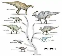 | Hadrosauridae[4] | H. indeterminado | ![]() Hadrosáuridos. | ||