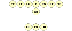 - Primero: la formación T fue la primera ofensiva en la que el quarterback tomaba el balón por debajo del centro y después o entregaba el balón a un corredor o retrocedía (drop back) y mandaba un pase. En las primeras ofensivas de lo que ahora se conoce como fútbol americano se utilizaba al quarterback (usualmente llamado "back bloqueador") principalmente como un bloqueador y el balón normalmente iba directamente a un halfback o a un tailback. Colocar al quarterback detrás del centro hacía (y aún lo hace) muy impredecible a una ofensiva ya que es muy difícil predecir una jugada basados solo en una formación determinada.