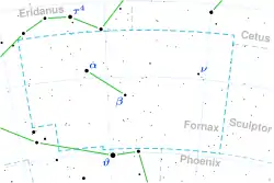 La segunda estrella más brillante es β Fornacis, una gigante amarilla de tipo espectral G9IIIb[3] 55 veces más luminosa que el Sol.[4]