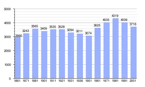 | Gráfica de evolución demográfica de Forno Canavese entre 1861 y 2001 |