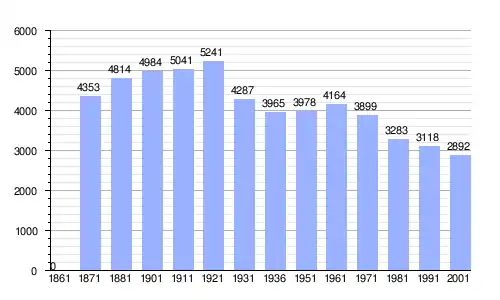 | Gráfica de evolución demográfica de Forno di Zoldo entre 1861 y 2001 |