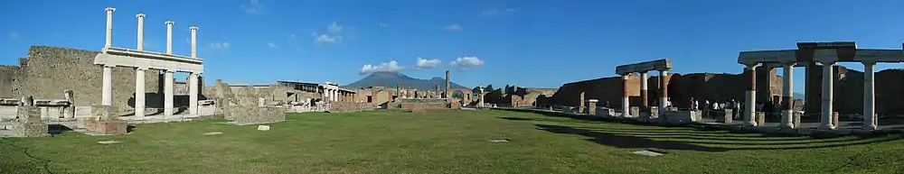 El foro de Pompeya es un foro de época romana, sepultado por la erupción del Vesubio del 79 y redescubierto tras las excavaciones arqueológicas en la antigua Pompeya. La zona era la principal plaza de la ciudad y representaba el centro político, económico y religioso[1] en el cual se desarrollaban eventos públicos, contratos de tipo comercial y debates. Es uno de los foros mejor conservados de las antiguas ciudades italianas.[2][3]