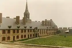 En 1719, Francia inició la construcción de un pueblo fortificado en la costa resguardada del Puerto de Luisburgo, llamando al emplazamiento Luisburgo. La construcción sólo pudo ser acabada la víspera del primer asedio británico en 1745. La inversión francesa en la construcción de la fortificación y una economía en crecimiento basada prácticamente en la pesca, junto con la llegada de algunos acadianos provenientes de la colonia británica ahora llamada Nova Scotia, pronto se notó que la población de Luisburgo se convertiría en una próspera comunidad. El creciente coste de la construcción,[1] llevó a Luis XIV a pensar si algún día podría ver desde Versalles la Fortaleza de Luisburgo alzándose en el horizonte. Este famoso pensamiento fue expresado a sus ministros (a quienes había autorizado a construir la fortaleza).