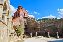 La fortaleza de Mdzovreti posee una complicada construcción monumental erigida sobre la roca. Tres capas de construcción se encuentran en ella. En la parte oriental de la fortaleza hay una iglesia dedicada a la Virgen María.