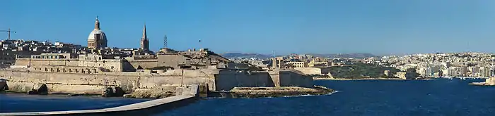 Los flancos de la ciudad fueron protegidos entre los siglos XVII y XVIII, con la construcción de las Líneas de Santa Margarita, las Líneas Cottonera y el Fuerte Ricasoli en el Gran Puerto, y el Fuerte Manuel y el Fuerte Tigné en el lado de Marsamxett. Otras propuestas, incluida la construcción de fortificaciones sobre Corradino y Ta 'Xbiex, también se hicieron, pero nunca se implementaron..[12][13]