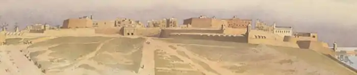 Detalle de una 1858 pintura por Edward Fanshawe, mostrando el Valletta Frente de Tierra.