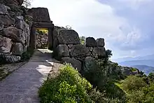 ![]() La muralla ciclópea de las fortificaciones de Micenas. | ||