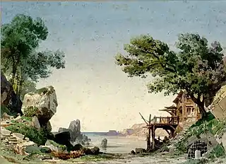 Boceto de Carlo Ferrario para el primer acto de Fosca (1876) | ||