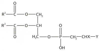 - Fosfonofosfatidilglicerinas: X=OH; Y=CH2OH