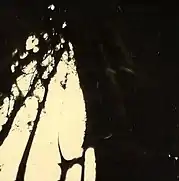 La "masa de negro" que rodea la vista de los cadáveres y las fogatas, esta masa donde "nada es visible" da en realidad una "marca visual" que es tan valorable como el resto de la superficie expuesta. Esa masa donde nada es visible es el espacio de la cámara de gas: el "cuarto oscuro" en el que uno tenía que retirarse, retroceder, en orden a dar luz a el trabajo del Sonderkommando afuera, sobre las fogatas. Esa masa de negro nos da la situación en si, el espacio de posibilidades, la condición de la existencia de las mismas fotografías.[29]