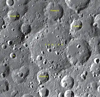 Por convención, estas características son identificadas en mapas lunares poniendo la letra en el lado del punto medio del cráter que está más cerca de Fowler.