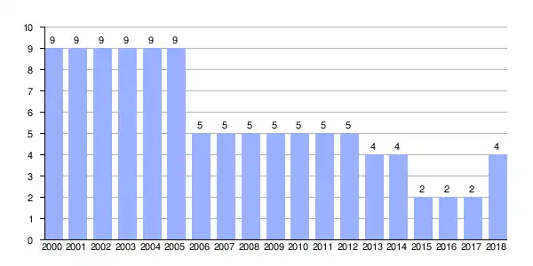 | Gráfica de evolución demográfica de Foxado entre 2000 y 2018 |