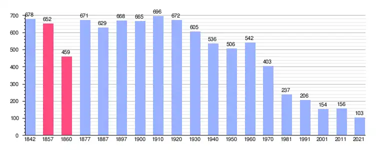 | Gráfica de evolución demográfica de Frías de Albarracín[5][6] entre 1842 y 2021 |
