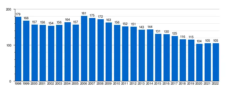| Gráfica de evolución demográfica de Frías de Albarracín[7] entre 1998 y 2022 |