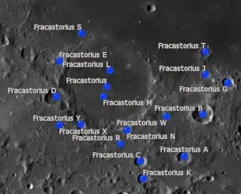 Por convención estos elementos son identificados en los mapas lunares poniendo la letra en el lado del punto medio del cráter que está más cerca de Fracastorius.