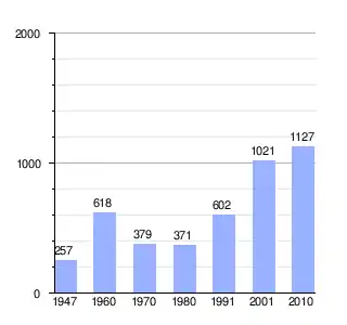 | Gráfica de evolución demográfica de Fraga[1] entre 1947 y 2010 |