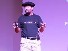 ![]() Francis con su característica txapela en Naukas Bilbao 2013 | ||