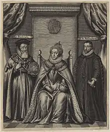 En diciembre siguiente a su regreso, Walsingham fue nombrado miembro del Consejo Privado de Inglaterra y fue nombrado secretario de Estado con Sir Thomas Smith. Smith se retiró en 1576, dejando a Walsingham con el control efectivo del sello privado, aunque no fue investido formalmente como Lord del Sello Privado. [33] Walsingham adquirió un escaño en el Parlamento del condado de Surrey desde 1572 que conservó hasta su muerte, pero no fue un parlamentario importante. [34] Fue nombrado caballero el 1 de diciembre de 1577, [35] y ocupó los puestos de sinecura de Registrador de Colchester, custos rotulorum de Hampshire y Gran Mayordomo de Salisbury, Ipswich y Winchester. [36] Fue nombrado Canciller de la Orden de la Jarretera desde el 22 de abril de 1578 hasta que lo sucedió Sir Amias Paulet en junio de 1587, cuando se convirtió en Canciller del Ducado de Lancaster además de secretario principal. [37]