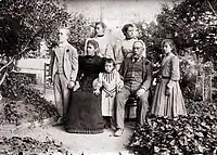 ![]() Francisco Brosa y Casanobas, en el jardín de la casa de Tiana, con su mujer Catarina Marroig i Marroig y sus cinco hijos. |
