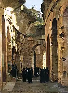 Procesión del Viernes Santo en el Coliseo de Roma, 1864. Óleo sobre lienzo, 120 x 88 cm, Alicante, Museo de Bellas Artes Gravina en depósito del Museo del Prado.