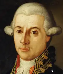 ![]() Detalle de un retrato de Francisco Javier de Santiago Palomares, hacia 1794, conservado en la Real Academia de la Historia de Madrid. | ||