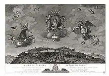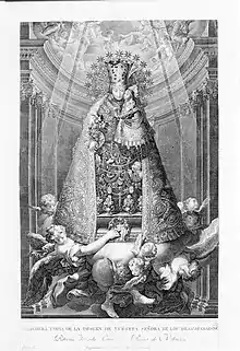 Cronológicamente, la última estampa que se le conoce: la imagen de Nuestra Señora de Belén, va fechada en Porta Coeli en 1827. Abierta por dibujo del cordobés Diego Monroy y Aguilera, fue encargo del infante Carlos María Isidro, hermano de Fernando VII, y su esposa con motivo de una visita al Desierto de Nuestra Señora de Belén en la sierra cordobesa, como consta por la leyenda que figura al pie de la estampa, en la que se explica el contenido de la misma: «Imagen de la Santísima y milagrosa Patrona de la Congregación de Hermitaños Anacoretos de la Sierra de Cordova / con la perspectiva meridional del Santo monte donde estos habitan / grabada a devoción y espensas de los Serenísimos Señores Infantes de España / Dn Carlos María Isidro de Borbón, y Dª María Francisca de Asís de Braganza y Borbón».[13]