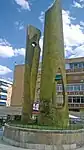 | "Un pueblo en lucha"[11] | 1982 | Parla | Escultura abstracta, que surge por encima de la representación de pisos y antiguas casas que luchan por conseguir que llegue el agua a todas las viviendas, la cual hace homenaje a la llegada del agua del municipio, se encuentra dentro de una fuente circular en la plaza del agua. | ![]() |