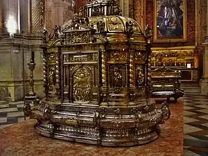 El sagrario de la catedral está hecho completamente de plata y tiene algunas partes sobredoradas. Mide 1090 mm de altura, 1200 mm de ancho y pesa más de 86 kilos.[10]