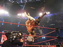 - Slingshot derivado en DDT,[3] leg drop,[3] Oklahoma roll[52] o double knee facebreaker