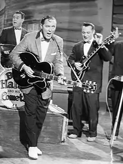 ![]() Bill Halley (izquierda) y Franny Beecher (derecha), durante un concierto de Bill Halley & His Comets en Alemania (1958). | ||
