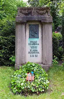 Skarbina falleció el 18 de mayo de 1910 a la edad de 61 años en su apartamento de la König-Augusta-Strasse, 41 con una enfermedad renal aguda que le había aparecido solo ocho días antes. Su tumba se encuentra en el antiguo cementerio de la parroquia de St. Jacobi en Berlín-Neukölln, en Hermannplatz. Su lápida está decorada con un retrato en relieve de Skarbina, realizado por el escultor Martin Schauss .