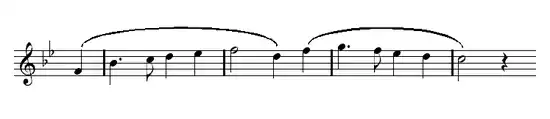 En la práctica común las frases a menudo constan de cuatro compases que culminan con una cadencia más o menos definida.[3] Una frase terminará con una cadencia más o menos resolutiva, dependiendo de si se trata de una frase antecedente o de una frase consecuente. Su representación gráfica en una partitura es similar a la de la ligadura y la ligadura de expresión.