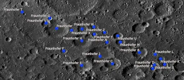 Por convención estos elementos son identificados en los mapas lunares poniendo la letra en el lado del punto medio del cráter que está más cerca de Fraunhofer.